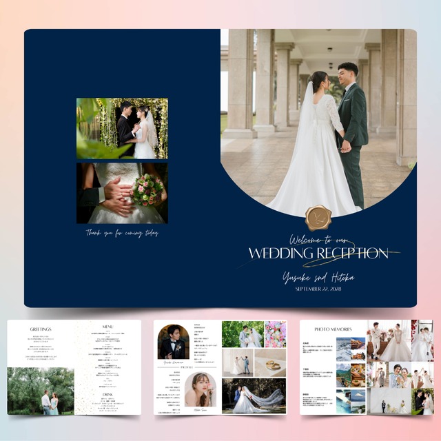 Canvaで使えるプロフィールブック(中綴じ冊子/8ページ〜)のテンプレートです。 ■商品について テキストと写真を差し替えるだけでプロフィールブックのデータを作ることができます。 基本構成として、表紙・ご挨拶・メニュー/ドリンク・プロフィール・思い出の場所・アルバム2種・裏表紙を配置していますが、この他にもいろいろ用意しています。 ・アルバム(写真ページ) ・Our History ・Our Favorites(好きなもの) ・for the wedding(準備期間) ・席次表(8パターン+パーツ) 構成(内容)を変えるだけではなく、フォントや色、文字の大きさ等すべてCanvaで編集可能ですので、自由に変更してオリジナリティあふれるアイテムを作ってください。 A5サイズ仕上がり(見開きA4サイズ)8ページで用意していますが、ページを追加(複製)して12ページ・16ページでの制作も可能です。 スマートフォンでの編集をする場合は、Canvaアプリのインストールが必要となります。 入稿に関してはPCからのみという印刷会社が多いため、スマートフォンからの入稿になりそうな場合は対応しているかどうか事前にご確認ください。 また、ゲストのお名前の漢字に旧字体など「PCまたはスマートフォンで出てこない漢字」が含まれている場合は、席次表の制作を避けるか、Canva内に事前に表示されるフォントがあるかを確認してください。 ■納品物 すべてPDFとなります。 ・Canvaテンプレート(印刷発注簡易ガイド付き) ・Canvaでの編集方法マニュアル ■購入からダウンロードの流れ 1.このページからご購入ください。 2.購入完了画面および購入後のメールに記載されているダウンロードボタンをクリック 3.PDFファイル(zipで圧縮)がダウンロードされる 4.ダウンロードしたファイルを解凍し、PDF内の[ダウンロード]ボタンをクリック 5.画面に従い、Canvaでの編集を開始する ■注意事項 ・テンプレートは個人利用のみ。商用利用や転売等当事務所の不利益になる行動は禁止です。 ・「購入からダウンロードまで」以外のいかなるフォローもしません。購入者自身で編集や発注、入稿等をする商品です。 ・発注、入稿など印刷に関するお問い合わせは、利用予定の印刷会社にしてください。 ・デジタルコンテンツ商品なため、いかなる理由があっても返品交換、返金は一切できかねます。