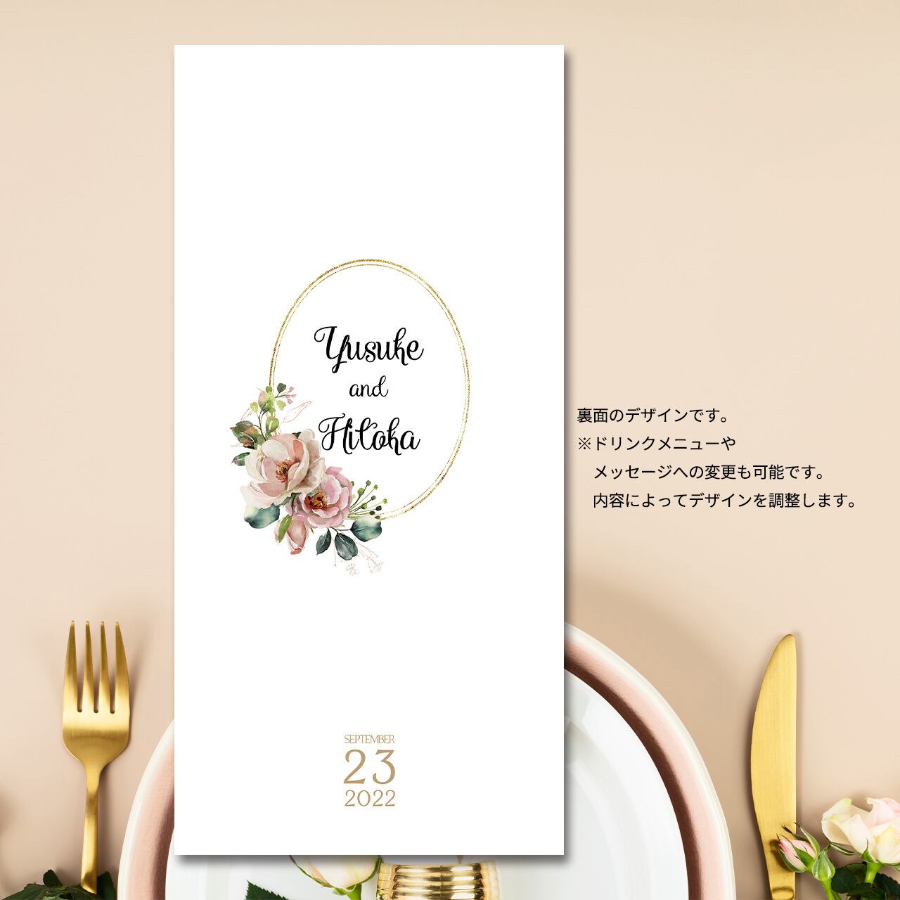 無料にて裏面への印刷も可能です。裏面にドリンクメニューやメッセージの記載などご希望があればお聞かせください。