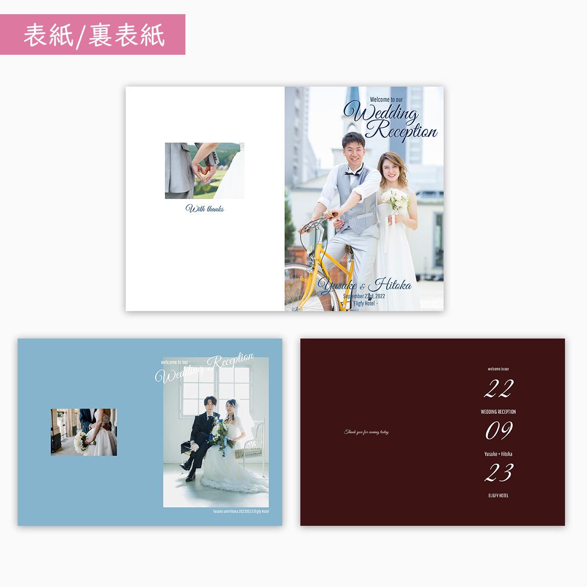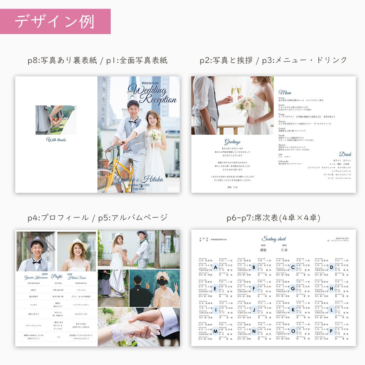 ・ページを増やすのも減らして二つ折り&紐止めにするのも、写真減らすのも増やすのも、文字減らすのも増やすのも、席次表なしも!こうしてくださいというのはありません。これだけあれば困らないかな、好きにアレンジできるかなという感じで詰め込んだので、テンプレートを元に自由にアレンジをしてください!